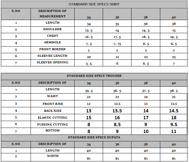 Pieces: 3 Piece Set (Kurta + Shalwar + Dupatta)
